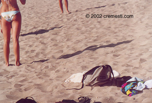 Look closely above this girl's butt. She has butt dimples ! I was taking some experimental motion shots of two girls playing volleyball that gorgeous summer day in July 2002, where HB was just crowded with gorgeous girls and beautiful women... Only in L.A. baby !